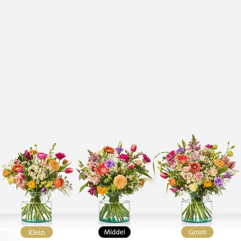 Wij bezorgen overal in Nederland, en als je wilt vandaag nog. Wanneer je op werkdagen voor 14:00 besteld (zaterdagen voor 12:00), dan kan je vandaag nog iemand verrassen. Liever wachten tot een bijzondere datum? Geen probleem! Geef de door jouw gewenste bezorgdatum aan tijdens het bestellen, en dan zorgen wij ervoor dat het boeket die dag geleverd wordt.
