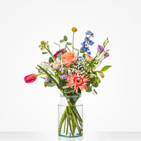 Op zoek naar een eigenzinnig voorjaarsboeket? Dan is dit een hele mooie, want Maandboeket april doet wat hij wil! Dit weelderige boeket is met veel zorg samengesteld met schitterende voorjaarsbloeiers als de ranke ornithogalum, de elegante ranonkel en de verleidelijke delphinium. Een heerlijk luchtig plukboeket dat dankzij de frisse kleuren en de speelse schikking direct lentekriebels opwekt.