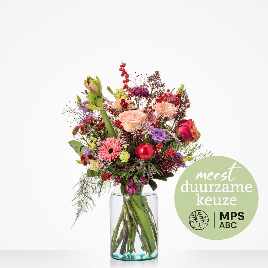 Met een extra duurzaam boeket bloemen denk je aan de toekomst. Het boeket is voor 100% samengesteld met bloemen die op de meest duurzame manier geteeld zijn. Ieder boeket is uniek, want wordt samengesteld met duurzame bloemen die op dat moment veilingvers beschikbaar zijn.