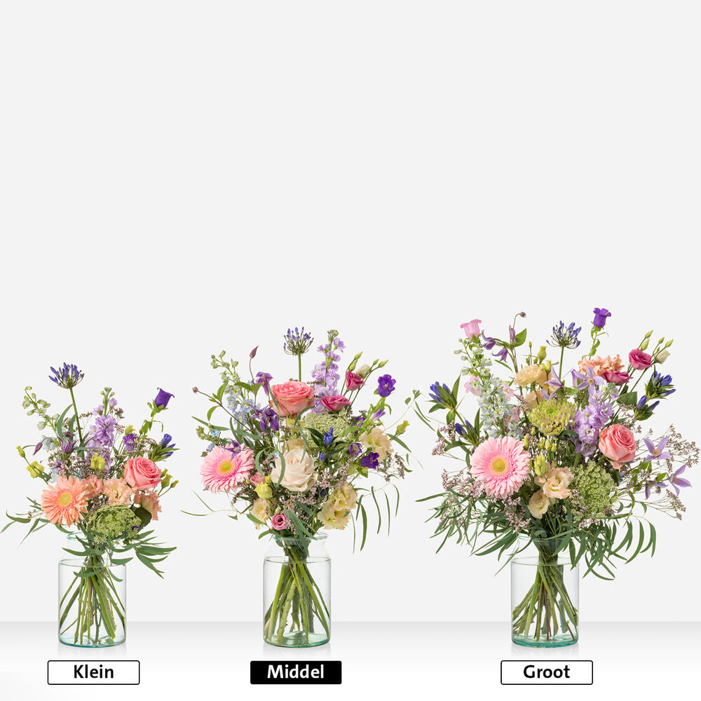 Hoera, een baby! Vier die blijde gebeurtenis met dit lieve geboortecadeau: een prachtig plukboeket vol zachte tinten én een superzacht knuffelkonijn voor de allerkleinste. Het boeket zit boordevol rozen, germini's, lisianthus en allium in vrolijke pastelkleuren. En het knuffelkonijn? Die heeft van die zachte, lange oortjes waar alle baby's dol op zijn. Perfect om de kersverse ouders én hun kleintje tegelijk blij te maken!
