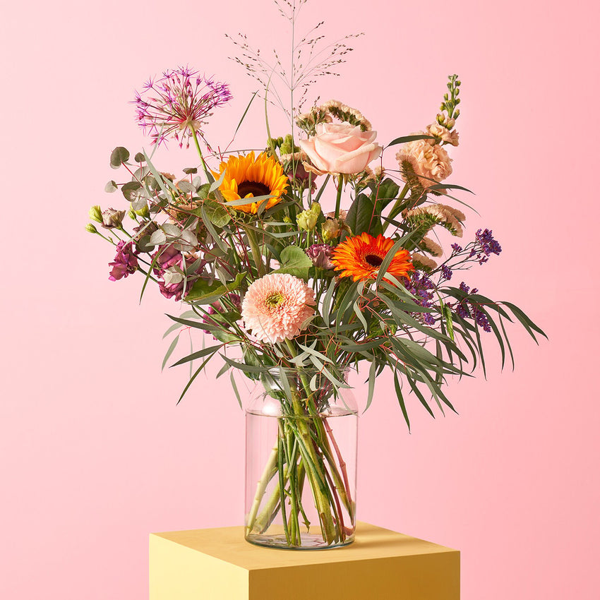 Browse our unique selection of vases in various sizes in our webshop. You can also order a standard glass vase to accompany each bouquet.