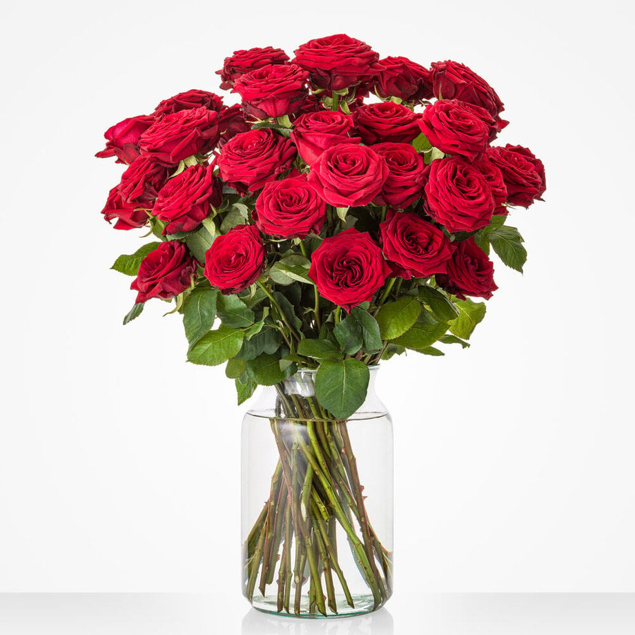 Dit boeket rode rozen is zo puur als de liefde zelf. Onze bloemisten schikken het Luxe rode rozen boeket met 18, 28 of 38 grote rode rozen van de allerbeste kwaliteit. Het ultieme symbool om jouw liefde, passie en romantische gevoelens over te brengen dus!