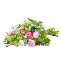 Het boeket 'Pioenpracht' is een luchtig en modern rozekleurig boeket.