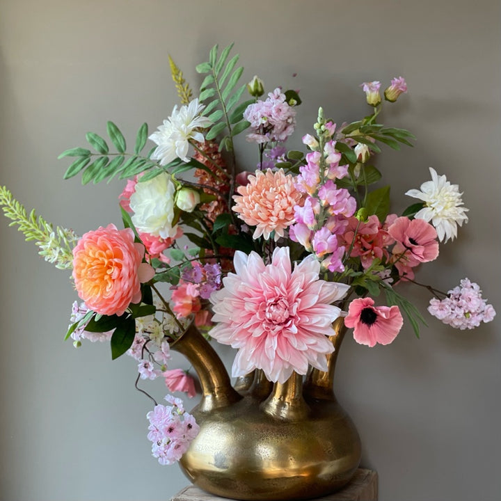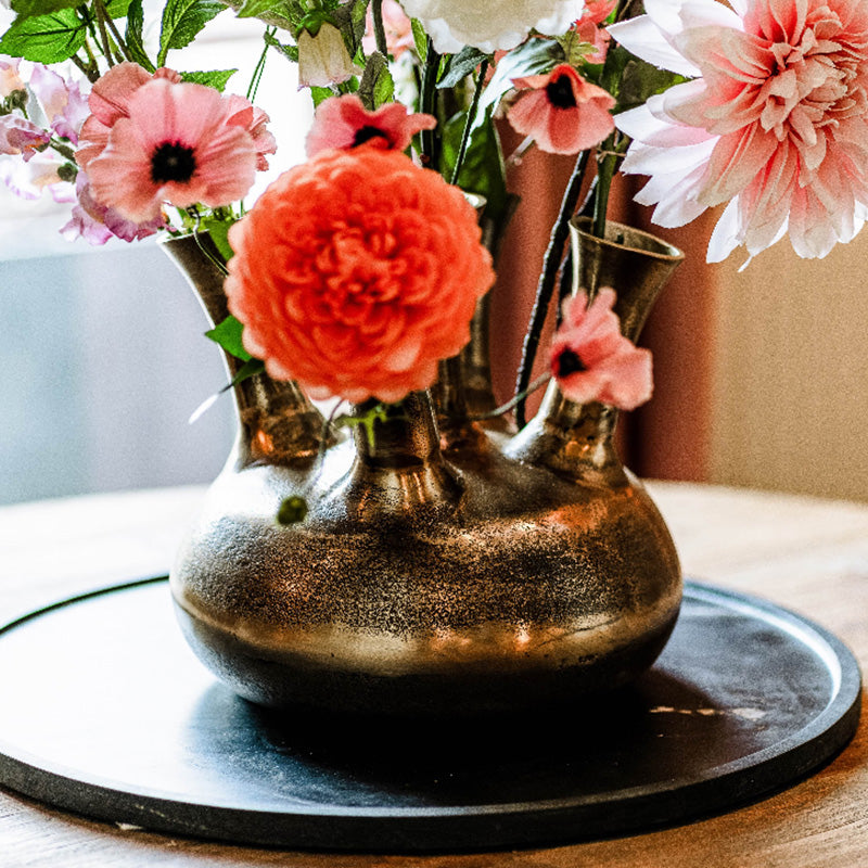 Deze mooie vaas heeft 5 openingen die ieder te vullen zijn met (zijden) bloemen. Door het robuuste formaat van 32 cm bij 34 cm is het een echte eyecatcher voor op tafel!
