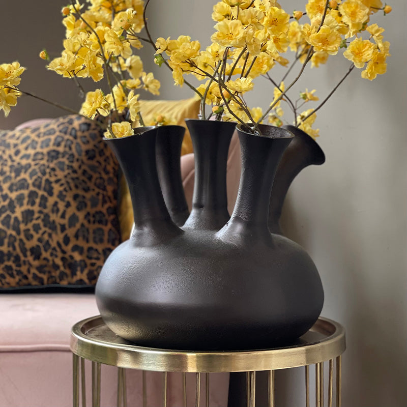 Deze mooie vaas heeft 5 openingen die ieder te vullen zijn met (zijden) bloemen. Door het robuuste formaat van 32 cm bij 34 cm is het een echte eyecatcher voor op tafel!